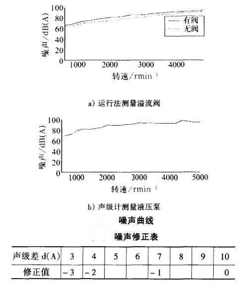发布时间:2019-02-14 00:00:00 浏览次数:3112液压泵按实车状态安装于试验台上 ,距离被试泵150 m m ,在上下左右 4 个方向测量液压泵噪声和本底噪声,取 4 个方向噪声最大值作为液压泵噪声。当所测量的噪声与该点对应的本底噪声值之差 > 3 dB(A )时,该测量值有效;当差值为 3 ~10 dB(A )时 ,则按表 1进行修正。采用 H S6288E 型多功能噪声分析仪对某泵进行测量 ,其曲线如图所示。