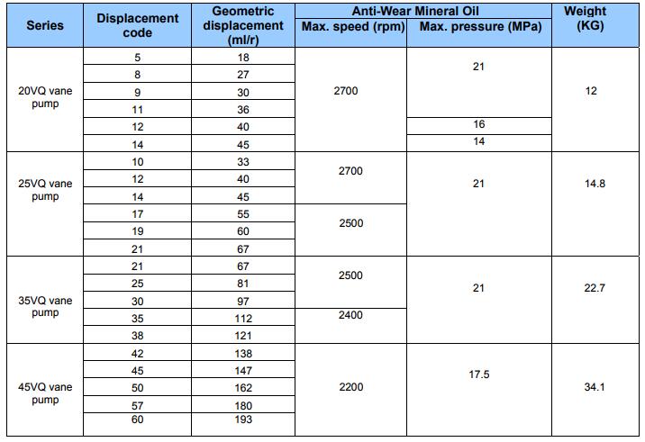 - 可与原装Vickers液压泵互换同一型号。