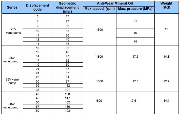 V系列双联泵包括2520V、2525V、3520V、3525V、4520V、4525V、4535V等型号,排量范围广泛。