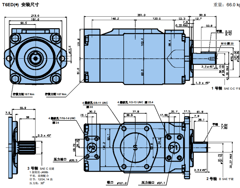 T6EES丹尼逊叶片泵安装尺寸: