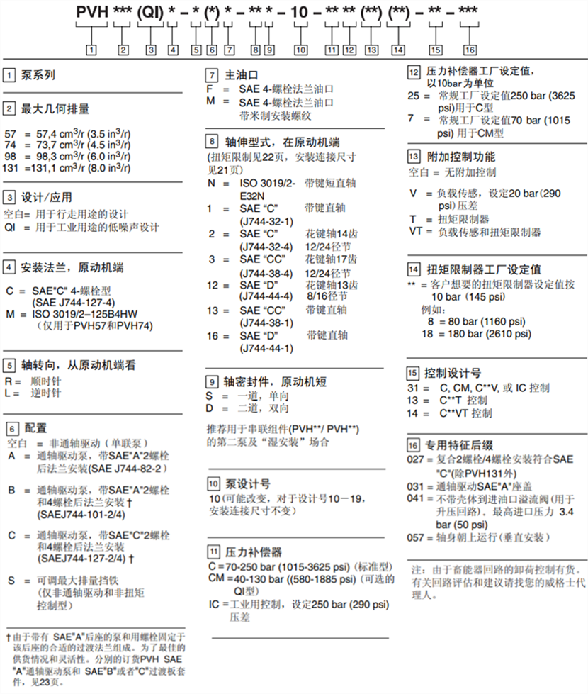 pvh074r01ab10a250000002001ae010a伊顿威格士柱塞泵型号说明: